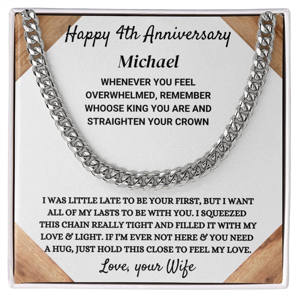 Celebrate four amazing years together with a gift that speaks strength, style, and meaning. The Cuban Link Chain is the perfect way to mark this special milestone. Designed with a sleek and masculine look, it’s a timeless piece he can wear every day—whether at work, on a night out, or for a special occasion.