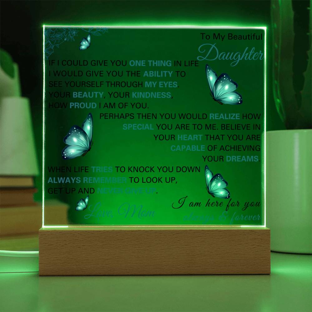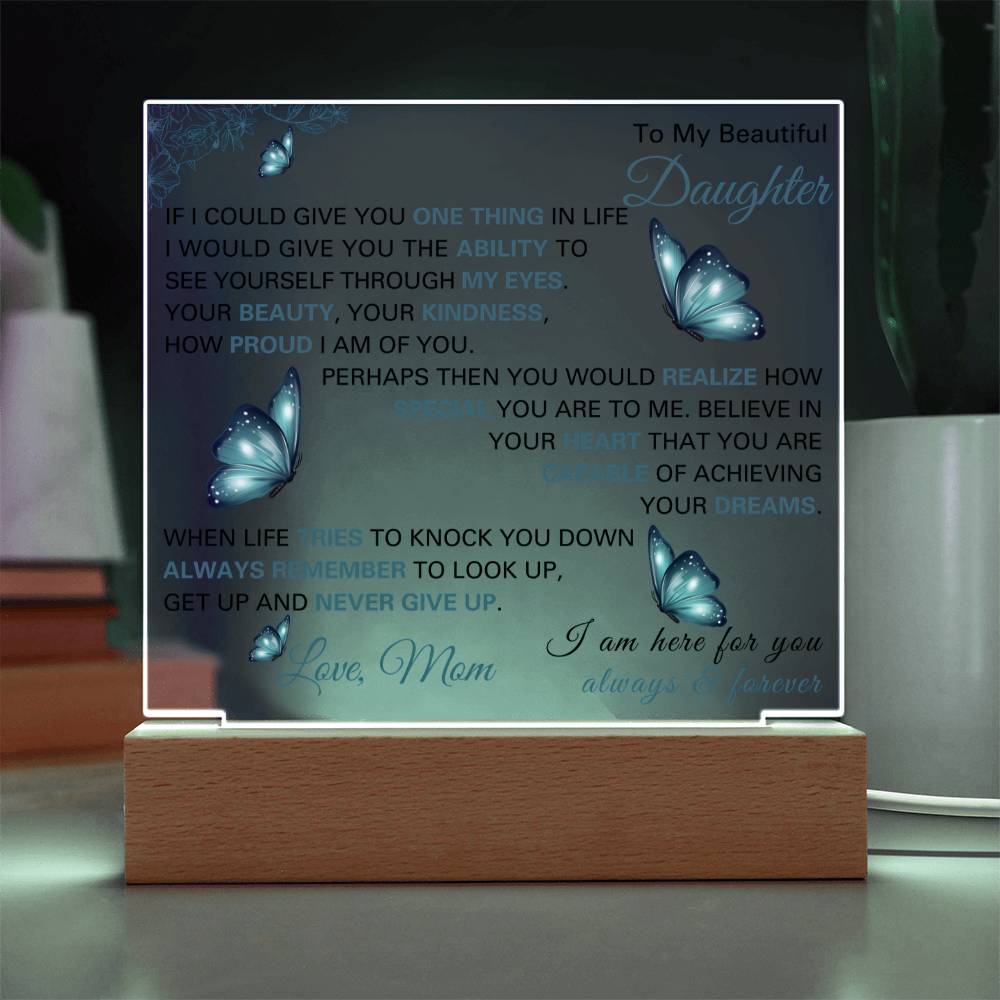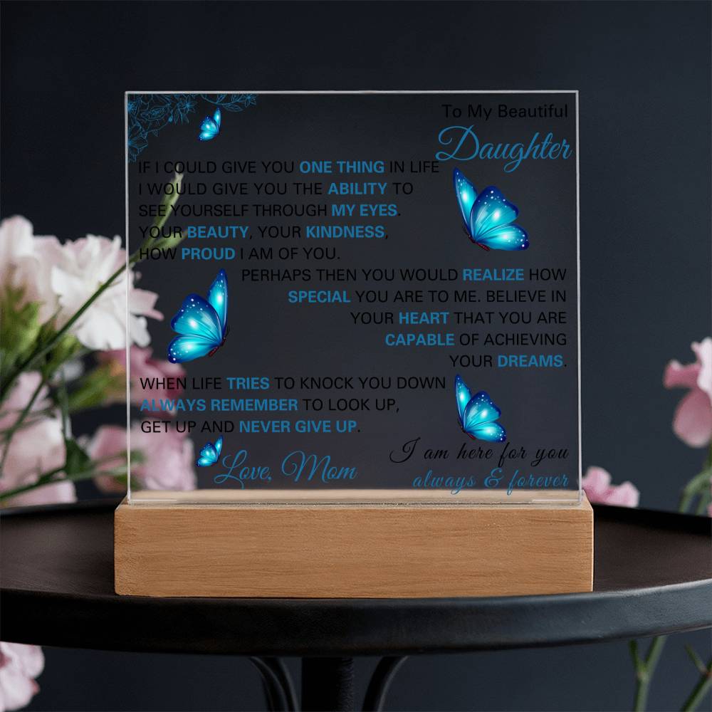 Make her feel loved with this beautiful LED acrylic plaque, a gift from a father to his daughter that speaks volumes. With touching words engraved and softly illuminated, this keepsake is ideal for birthdays, graduations, Christmas, or any moment you want to remind her how cherished she is. The glow of this acrylic plaque will brighten not only her room but also her heart, keeping your love close no matter how far apart life takes you.
