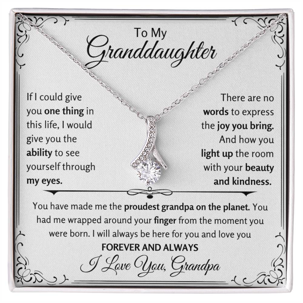 Make your granddaughter feel truly appreciated with this beautiful necklace. Crafted with elegance and care, it’s more than just a piece of jewelry — it’s a token of love and thoughtfulness she’ll remember forever. Each detail reflects the special bond you share, making it the perfect gift for birthdays, holidays, graduations, or simply as a surprise. This necklace will always remind her that she is deeply valued and celebrated.