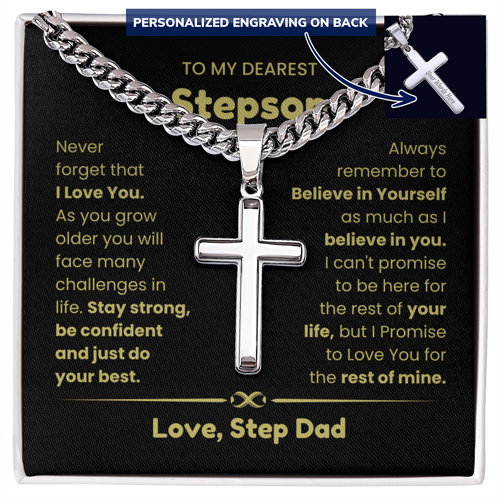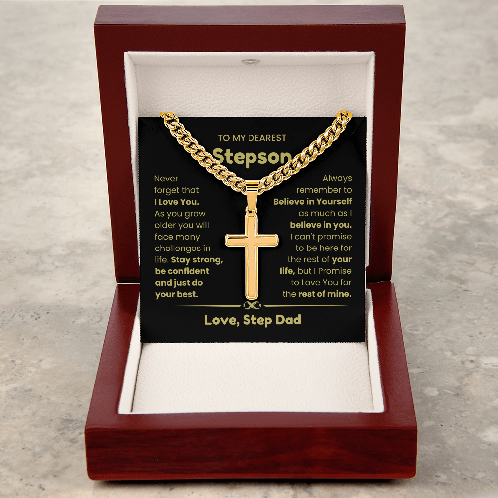 Give your stepson a gift that blends style with meaning. This Cuban link chain with cross pendant is a timeless symbol of faith and strength. Made with quality craftsmanship, it’s designed to withstand everyday wear while keeping its shine.