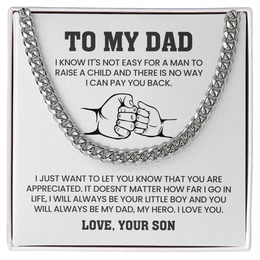 Make Dad feel special with this handsome Cuban chain necklace that pairs perfectly with a heartfelt message card. Strong, bold, and meaningful—just like the bond you share—it’s a gift he’ll be proud to wear.