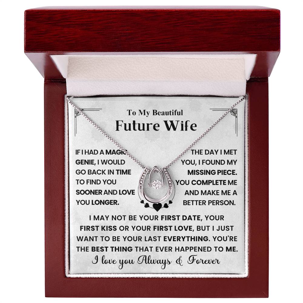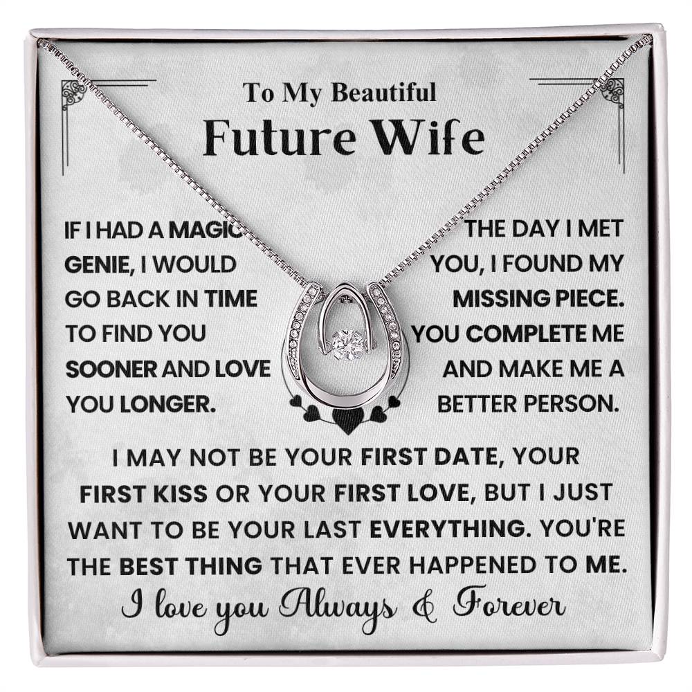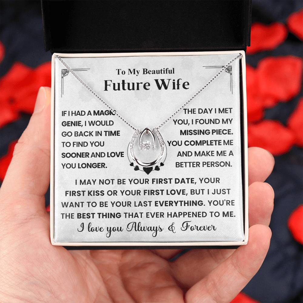 Finding the perfect gift for your future wife means giving her something that captures both elegance and emotion. This soulmate pendant necklace paired with a heartfelt message card does exactly that.