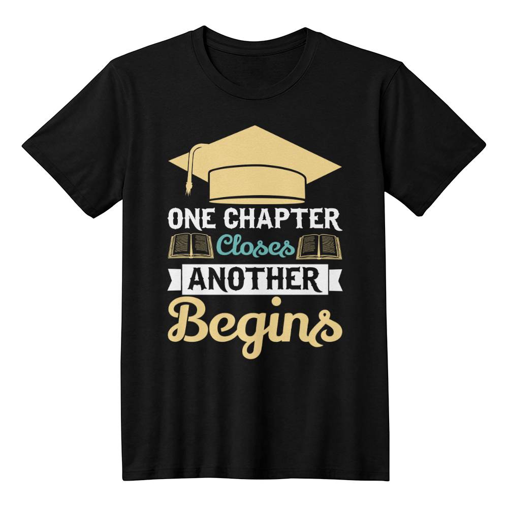 Celebrate a milestone that marks both an ending and a new beginning with this inspiring graduation t-shirt. Featuring the bold quote “One Chapter Closes, Another Begins” with a graduation cap design, it’s the perfect keepsake to honor hard work, achievements, and the exciting journey ahead. Whether for high school, college, or beyond, this shirt makes a meaningful gift for any graduate who deserves to shine.
