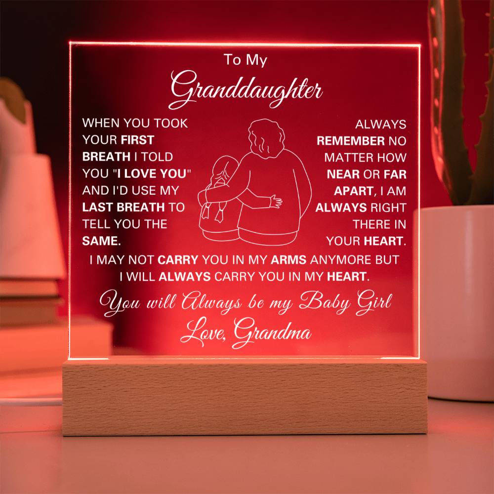 This beautiful square acrylic plaque is more than a decoration — it’s a daily reminder of love, encouragement, and the unbreakable bond you share with your granddaughter. Designed with elegance and warmth, the plaque carries a message that she can keep close to her heart whether it’s displayed on her desk, bedside, or a special corner in her room.