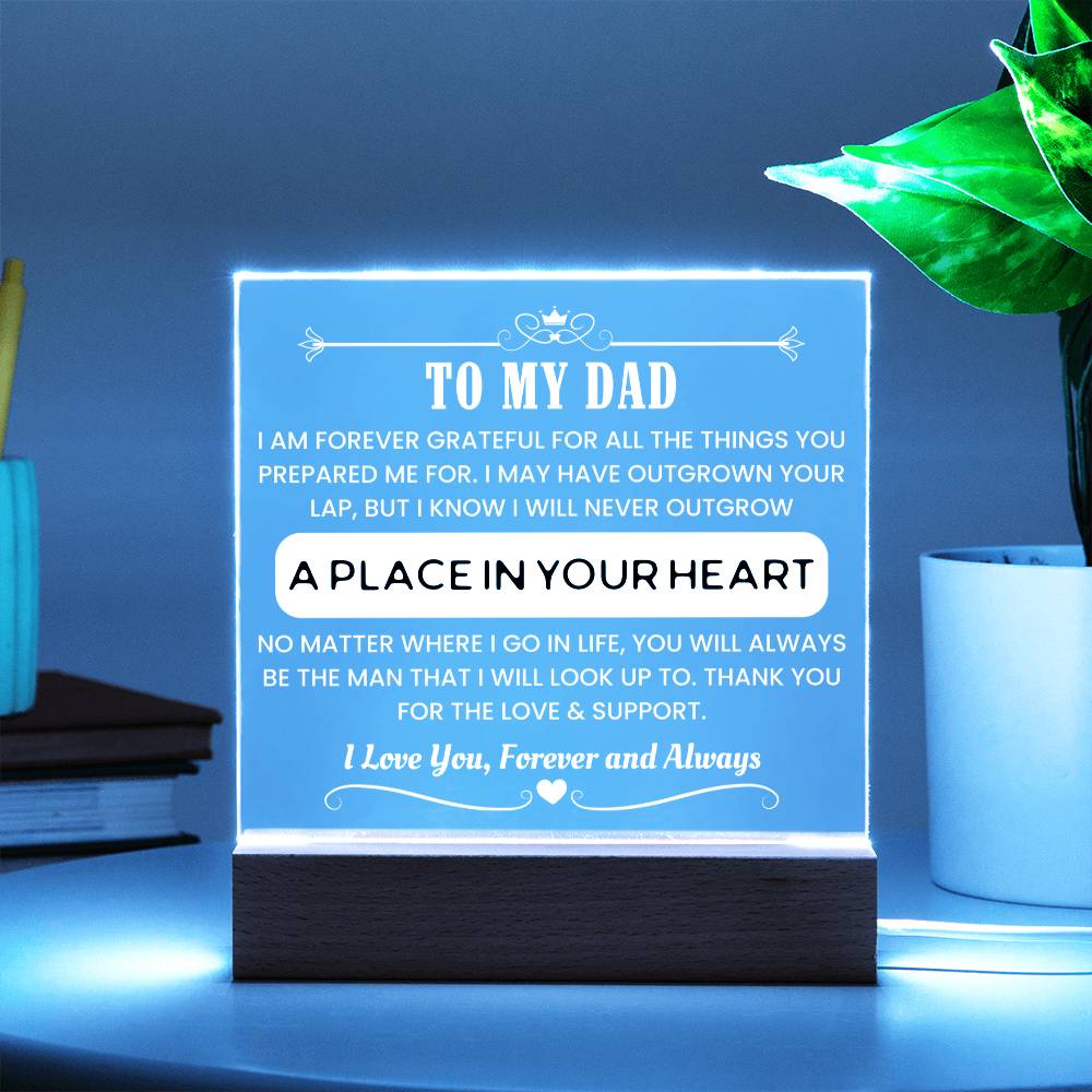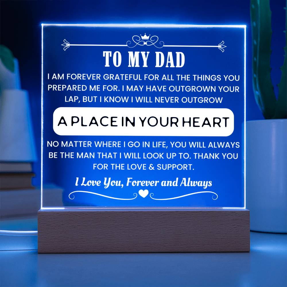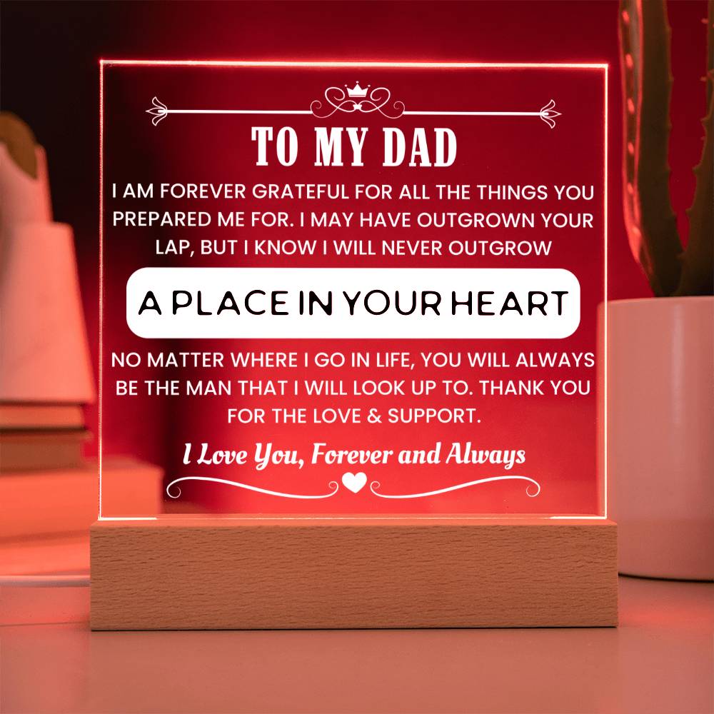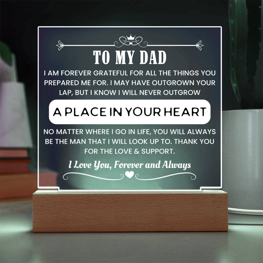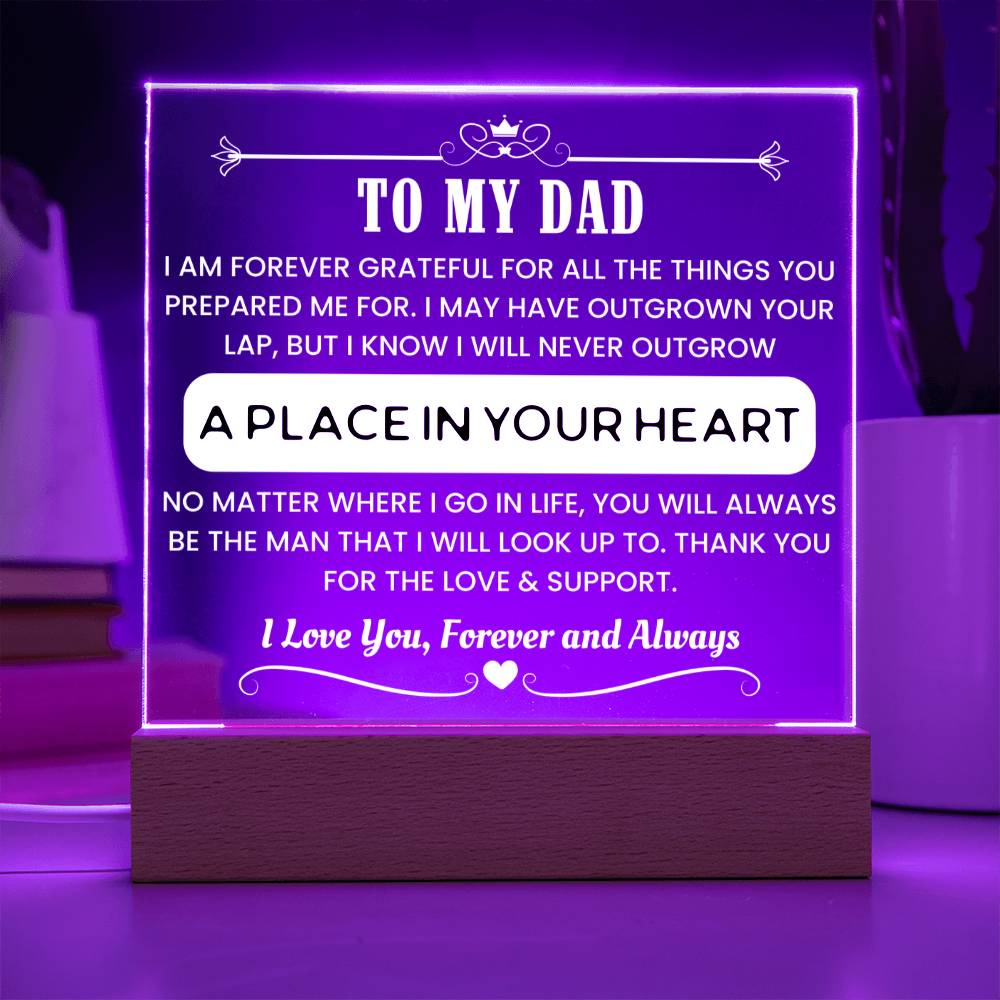 Make Father's Day unforgettable with this stylish acrylic night light that speaks from the heart. Designed to honor the man who raised the one you love, this LED-lit display is both modern and meaningful. The powerful message engraved within shines—literally and emotionally—expressing your deepest appreciation.