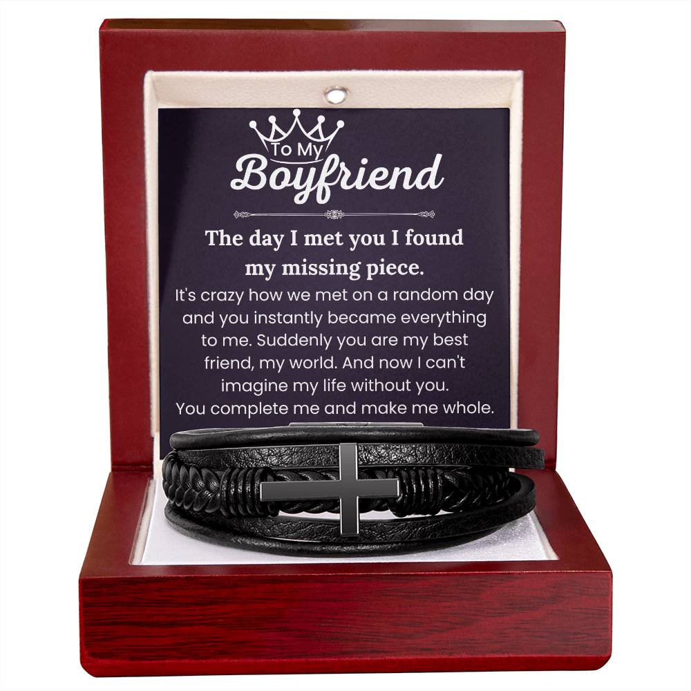 Celebrate love and meaning with this elegant men’s bracelet featuring a sleek cross charm. Crafted from premium black braided leather, it combines style, strength, and sentiment. Presented in a premium wooden gift box with a heartfelt message card, it makes a thoughtful gift for birthdays, anniversaries, or simply to show how much you care.