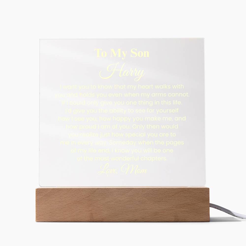 Surprise your son with a glowing acrylic keepsake that lights up not only his room but also his heart. With its meaningful engraved message, this gift serves as a daily reminder of your love, encouragement, and lifelong support.